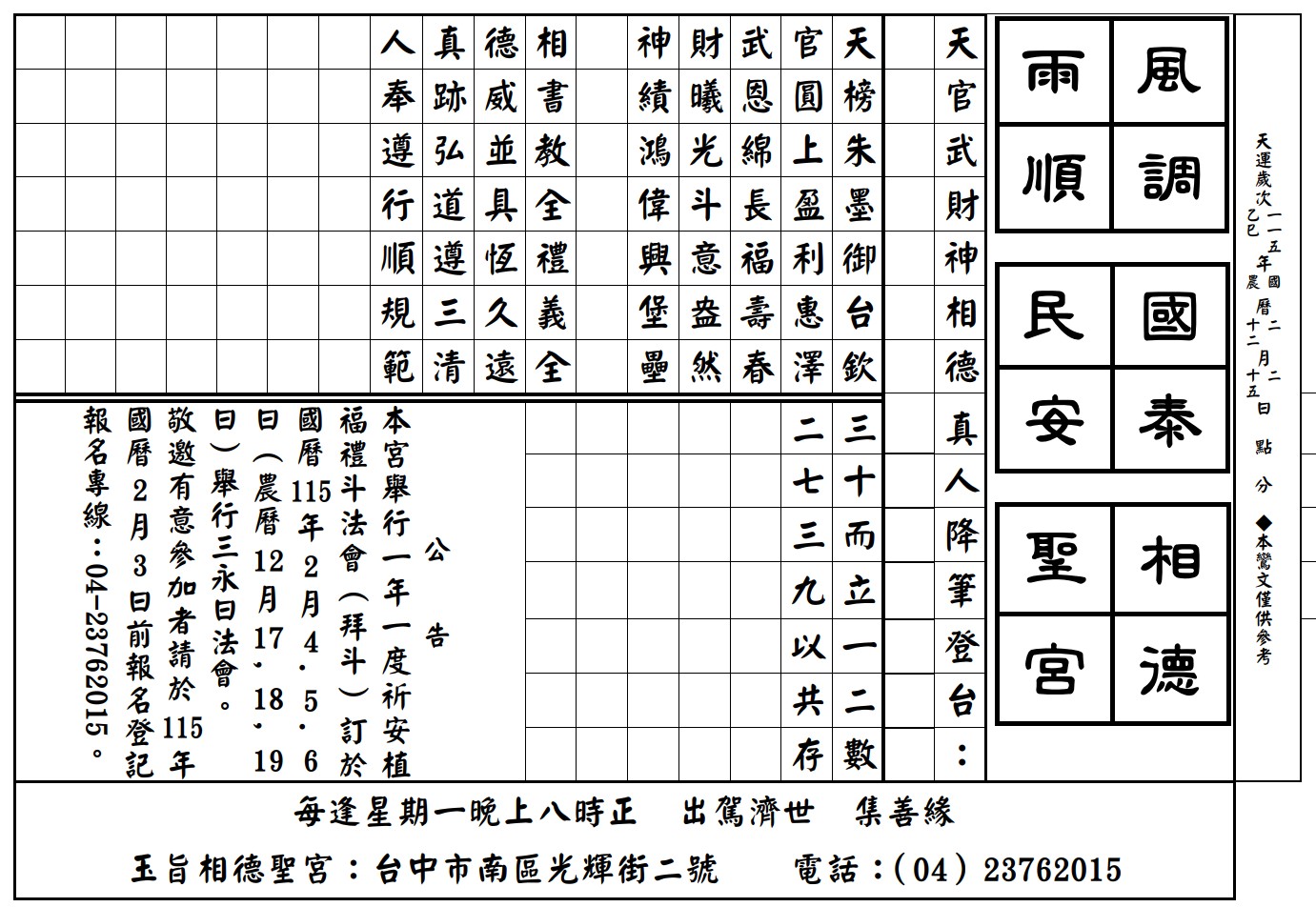 天官五路武財神降駕【鸞課濟世】