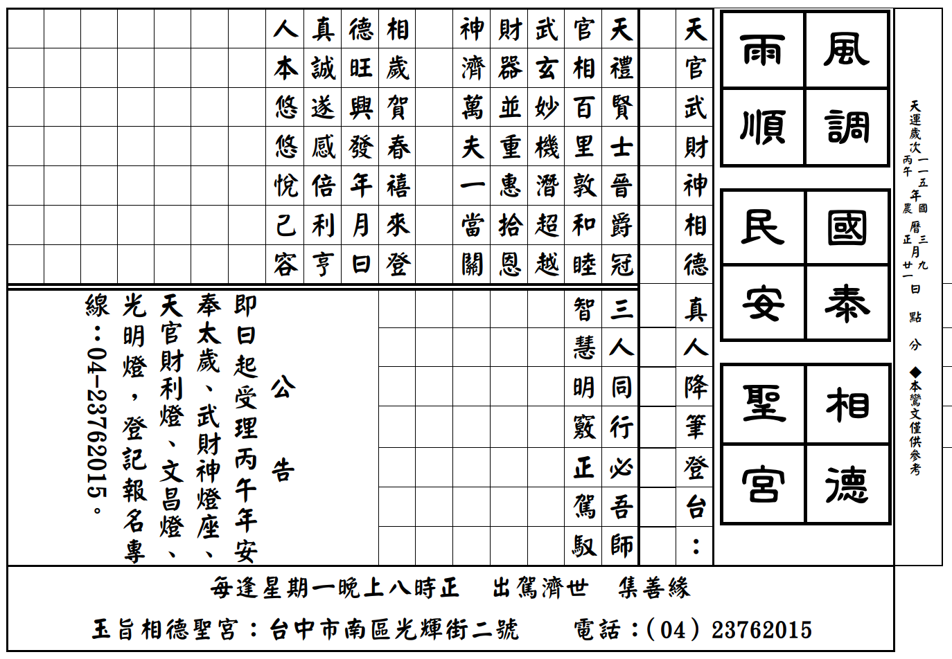 天官五路武財神降駕【鸞課濟世】