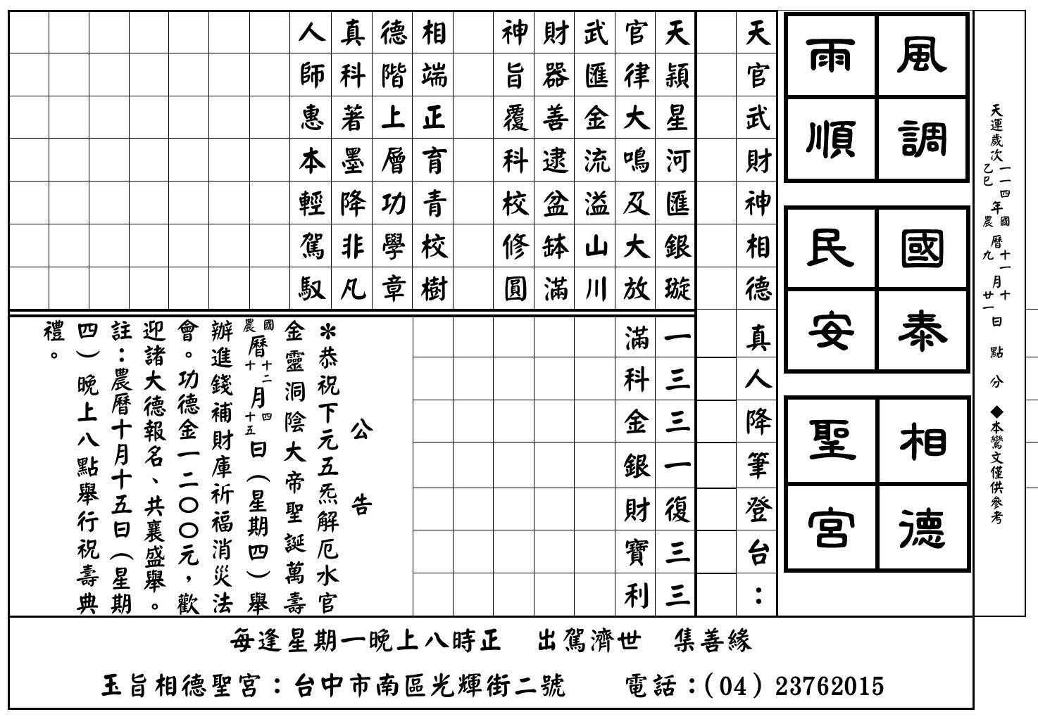 台中相德聖宮【天官五路武財神】 登記,或私訊粉專留言登記。
