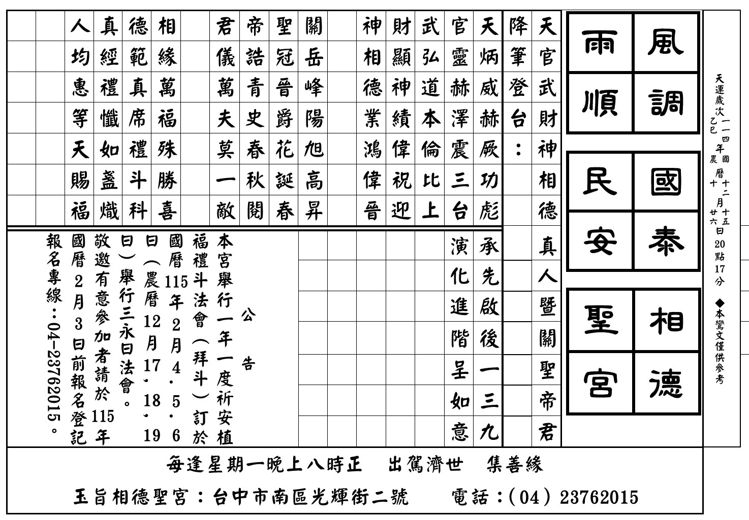 ★下期濟世日:國曆12/29(農曆十一月初十)