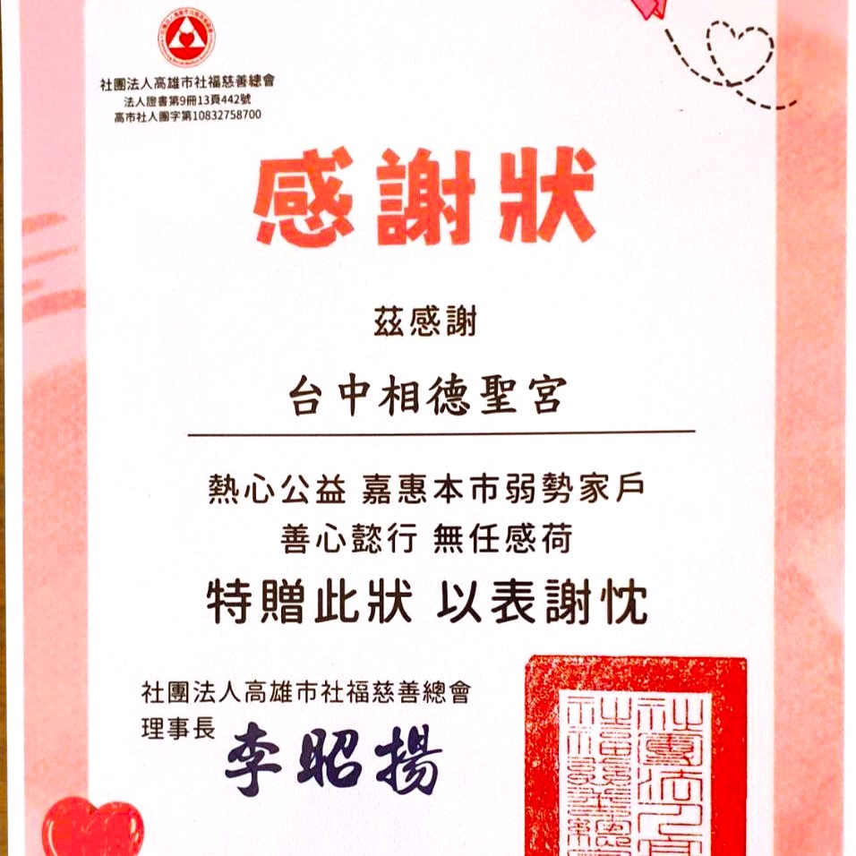 乙巳年相德聖宮普渡募集普品物資總計91份,在相德慈善會的協助下,分別捐贈給教養機構及弱勢家庭,感謝十方善信發心贊普,功德無量。