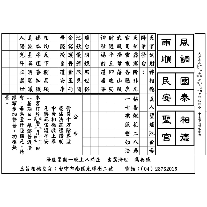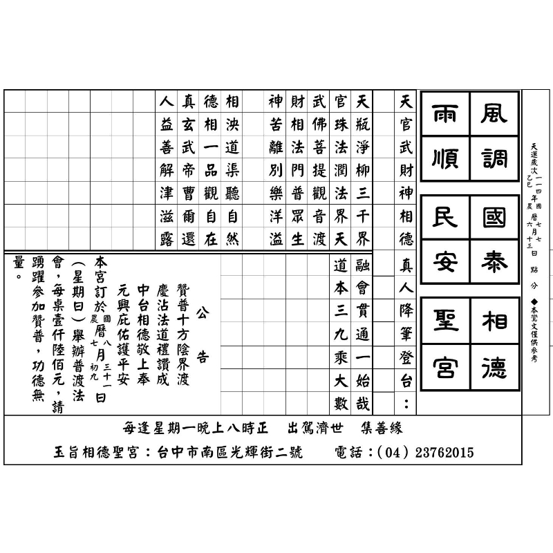 一一四年七月七日(農曆六月十三日) 天官五路武財神降駕【鸞課濟世】 求財、事業、財運、股票、考試、姻緣、健康、補財庫