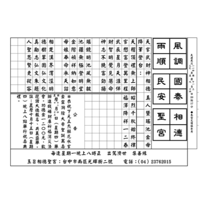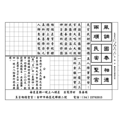 一一四年十一月三日(農曆九月十四日) 天官五路武財神降駕【鸞課濟世】 求財、事業、財運、股票、考試、姻緣、健康、補財庫